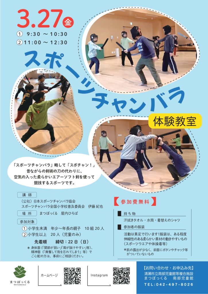 | 開催日時 | 3月27日(金) ①09:30~10:30(小学生未満) ②11:00~12:30(小学生以上) |