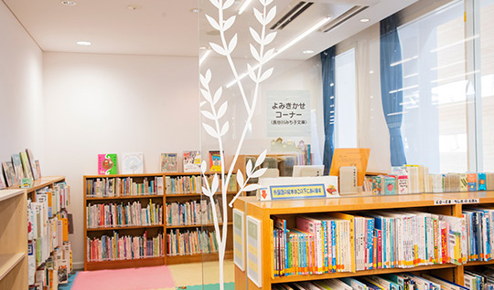駅前図書館は子どもから大人まで楽しめる読書空間です。一般フロアはコーヒーとともに読書や勉強もでき、世代を超えて心地よく過ごせます。