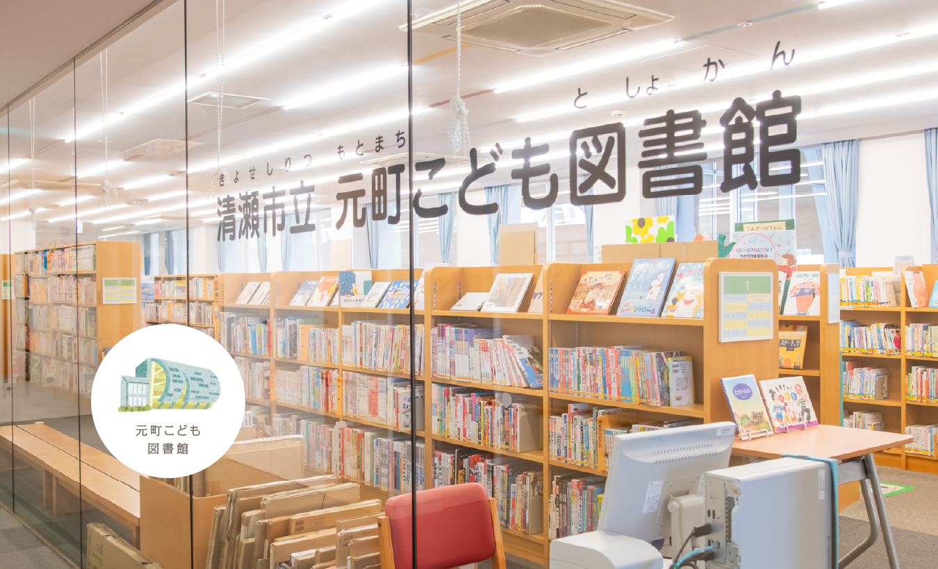 併設の「こども図書館」には、寝転べるスペースや読み聞かせコーナーもあります。清瀬駅徒歩1分で雨天時にも傘をささずに来られます。
