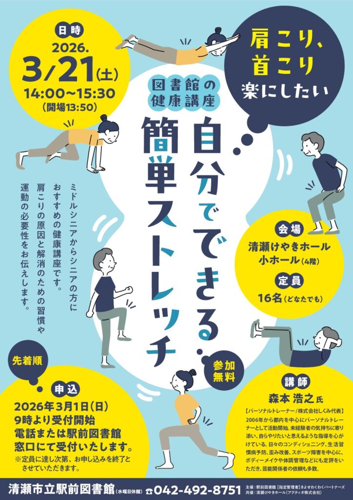 【3月21日開催】図書館の健康講座「講座自分でできる簡単ストレッチ」