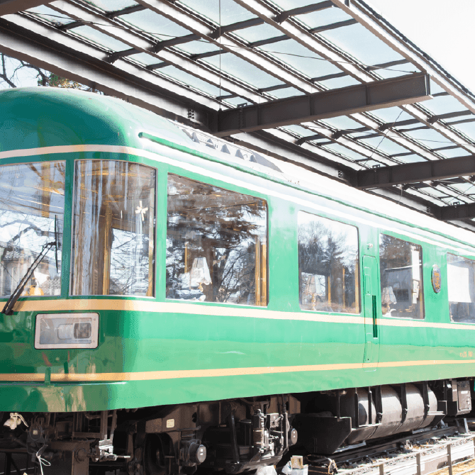 製造を東急車両、内装デザインを東急百貨店が担当。大きな展望窓が特徴で、中央部に4人用個室を設けていました。編成最後尾にダイニングルームを配置していることから、関係ない人の通り抜けがなく、ゆったりとした空間の中で食事をすることができました。